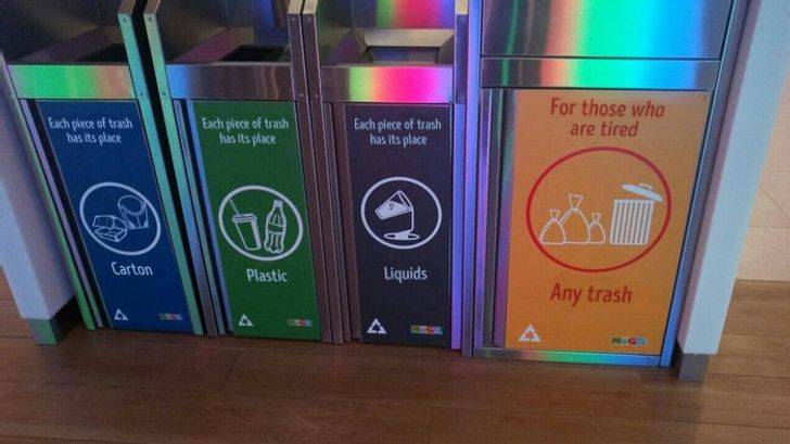 Maybe this is a social experiment to see if people will take offense at getting called tired and start using the proper bins.