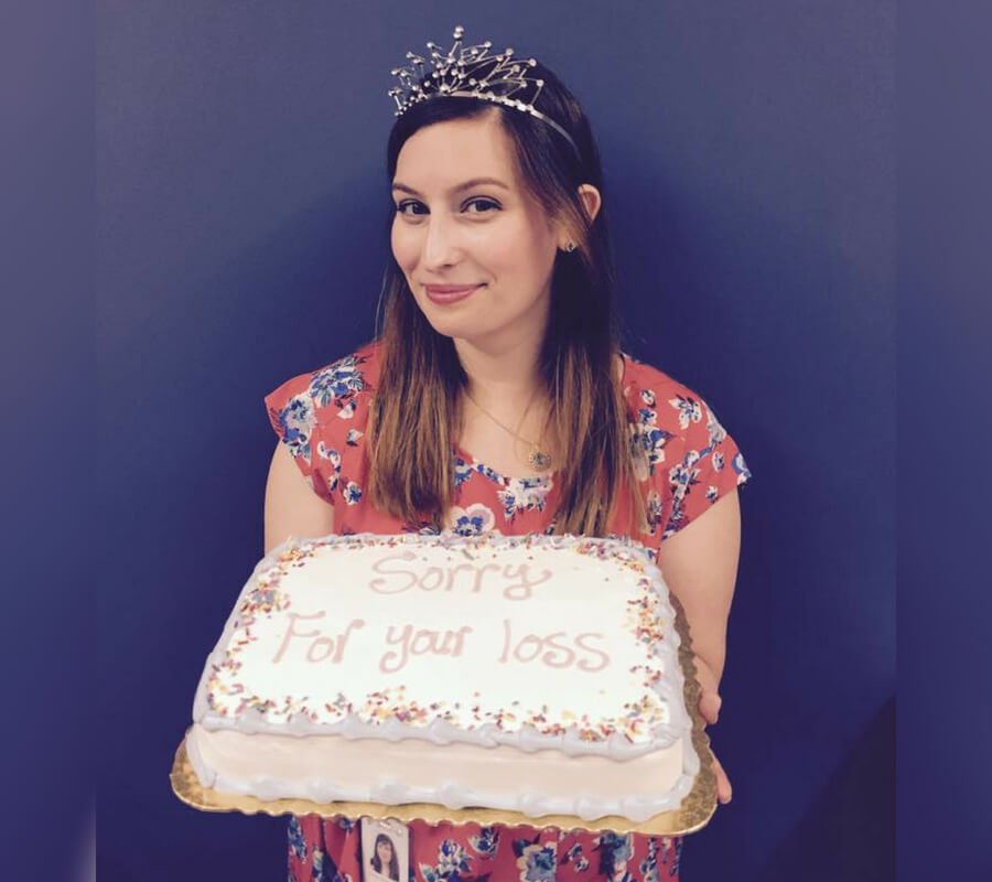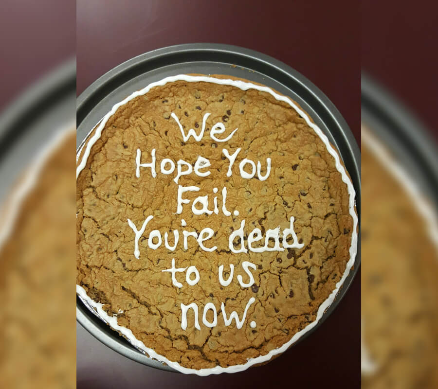 You don’t want them thinking that they’re the big winners in this transition of employment. Coming in with a cake that says “Sorry for your loss” is a perfect way to portray that image.