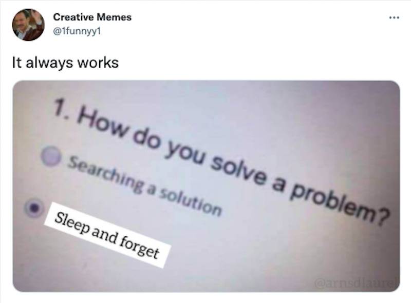 Whenever I’m confronted with a problem that I’ll eventually have to deal with but not immediately, I always tell myself, “That’s future me’s problem.” It seems as if this Twitter user has the same mentality.