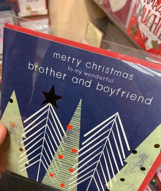 Why would anyone have the need to have a joint Christmas card to give to their boyfriend and their brother? Don’t those two each deserve their own card?