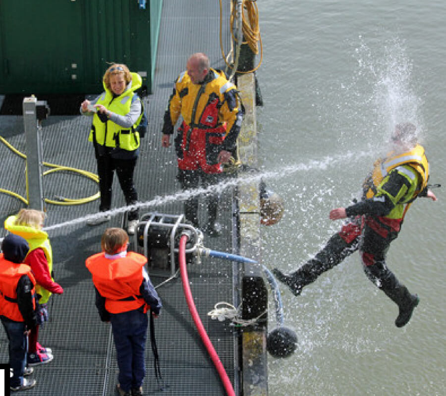 This coast guard instructor found out the hard way that their water hoses pack a punch.