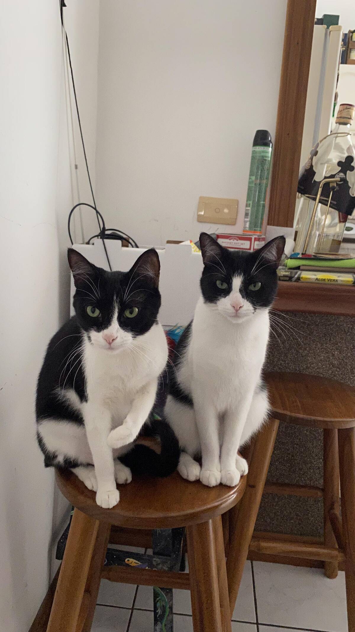 You truly can’t beat a pair of matching tuxedo cats. Twinsies! Their expressions are somehow serious and adorable all at once. What a dynamic duo—definitely plotting something or just judging your snack choices. Either way, impossible not to love.