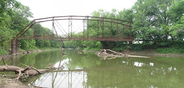 In recent years, the bridge has fought against the elements but is in a losing battle. Its exterior is notably rusted, and a 2013 flood mangled some of the metal bars and railings. The deck was swept away and a tree damaged the west truss. The tree remains caught in the bridge’s deteriorating skeleton.