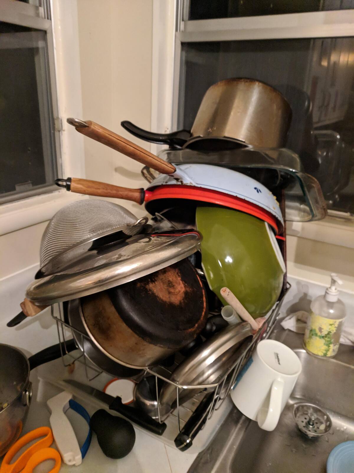 There’s stacking the dishes, and then there’s crafting a post-holiday leaning tower of cookware. I’m kind of impressed it hasn’t all come crashing down… yet. This is Jenga for kitchen pros!