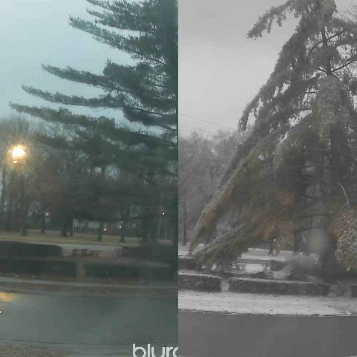 That pine tree went from regular neighbor to neighborhood drama after one icy day. Hope it bounces back when spring arrives—it looks both majestic and slightly tragic.