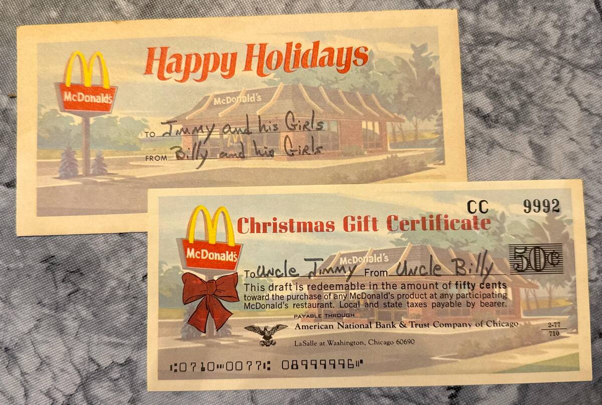 “1970’s McDonald’s Christmas gift certificate”