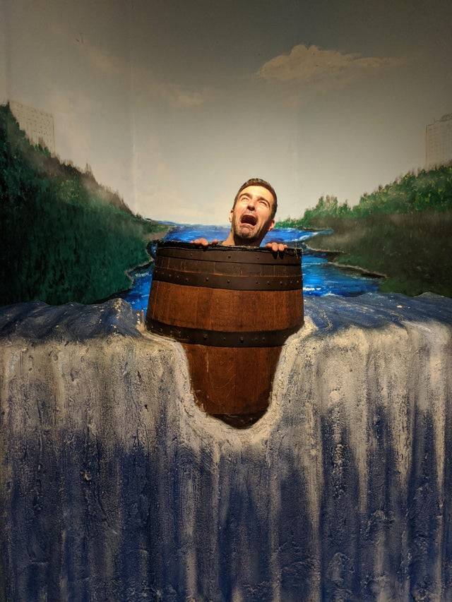 On a trip to one of the natural wonders of the world, this woman couldn’t help but be amused by her boyfriend as he takes a trip in a barrel over the edge of the falls.