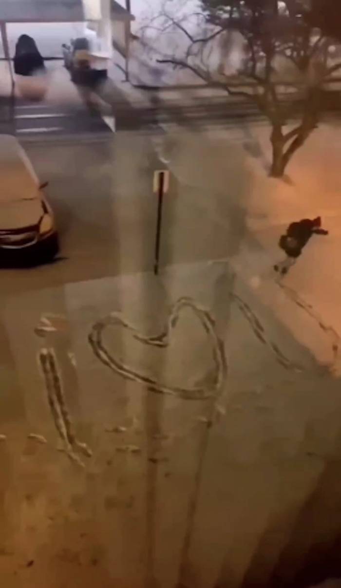 Some people leave romantic messages for their partners in the form of greeting cards. Then there is this woman, and her preferred artistic medium is snow.
