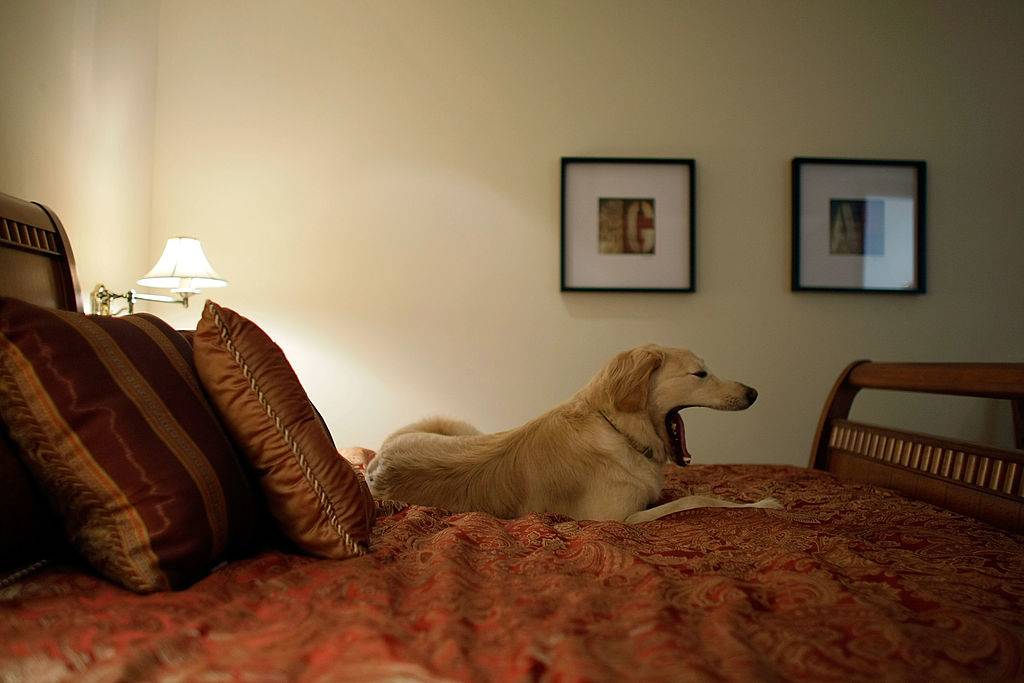 That’s why it’s especially important to keep a close eye on your dog when they are getting old. Additionally, avoid rearranging furniture and consider blocking off the stairwell to prevent your pet from running into something or falling.