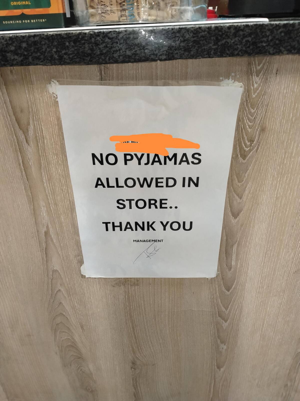 Apparently, sleepwear is just too much for this establishment to handle. Pyjama bans: because nothing says ‘classy’ like being overdressed for Cheetos.