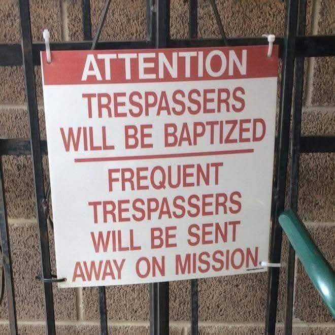 Nothing like a little light trespassing to freshen up your soul with a baptism. Repeat offenders are clearly destined for greater things! Who knew the path from hooligan to missionary was so clearly marked?