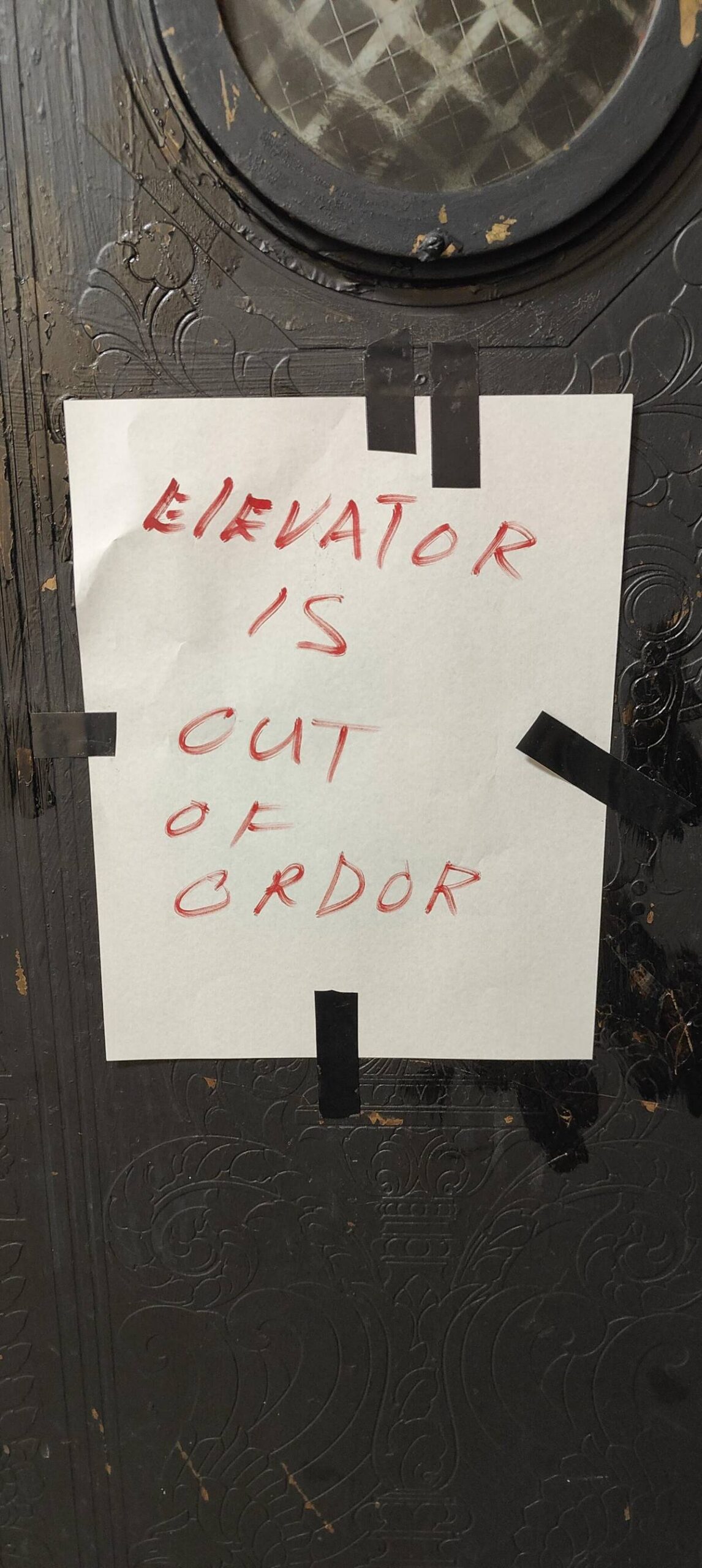 Sometimes, a handwritten note tells a bigger story than it means to. The elevator is out of order—and apparently, so is spelling today! You know it’s serious when even the letters are protesting. I guess I’ll take the stairs and wish the elevator a speedy recovery.