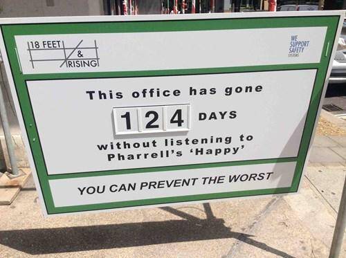 Every office tracks safety, but apparently, here they also keep tabs on just how much Pharrell is played. Is avoiding ‘Happy’ for 124 days a badge of honor, or a sign of deep office unrest? Either way, the stakes have never felt higher.