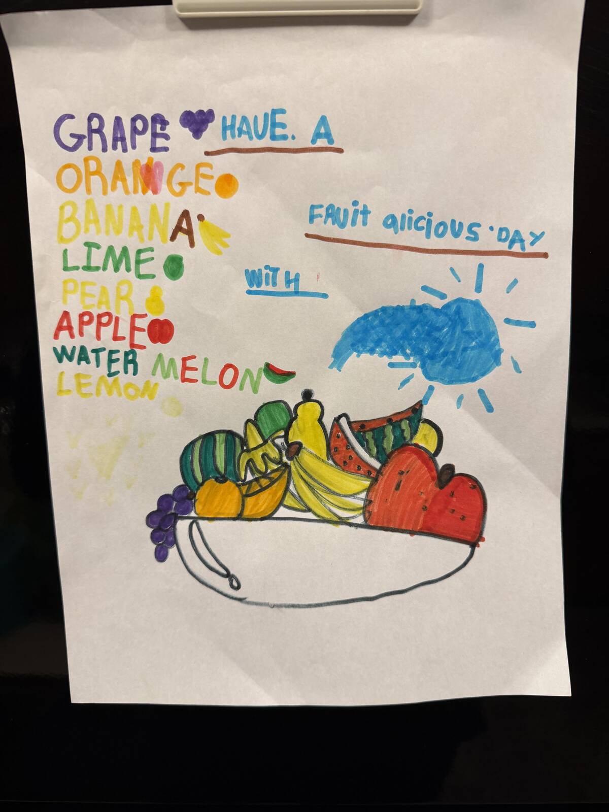 If the rainbow wrote grocery lists, this is what it would look like. This note is so full of fruit and optimism, it makes me want to go eat everything in my fridge (but in the most colorful way possible).