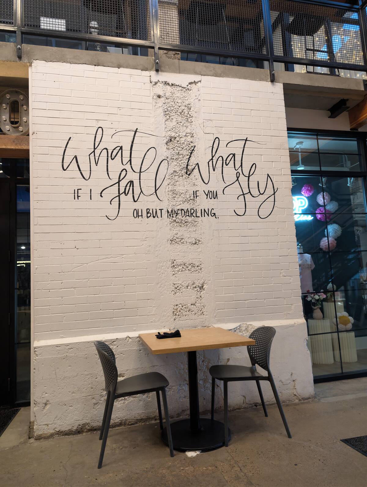 This wall isn’t just asking a question, it’s having an existential dialogue with itself. What if we all fall… or fly? Either way, poetic cafe vibes are coming in hot.