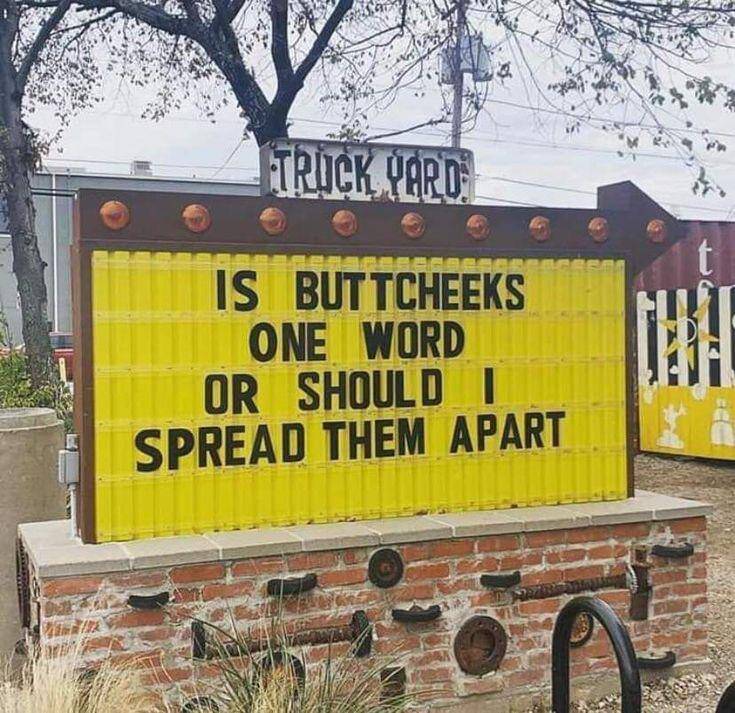 That’s intellectual curiosity you just don’t see every day. Is buttcheeks one word, or should you…spread them apart? This sign nails the art of the double entendre. Grammar teachers, beware. The internet’s sense of humor is evolving fast.