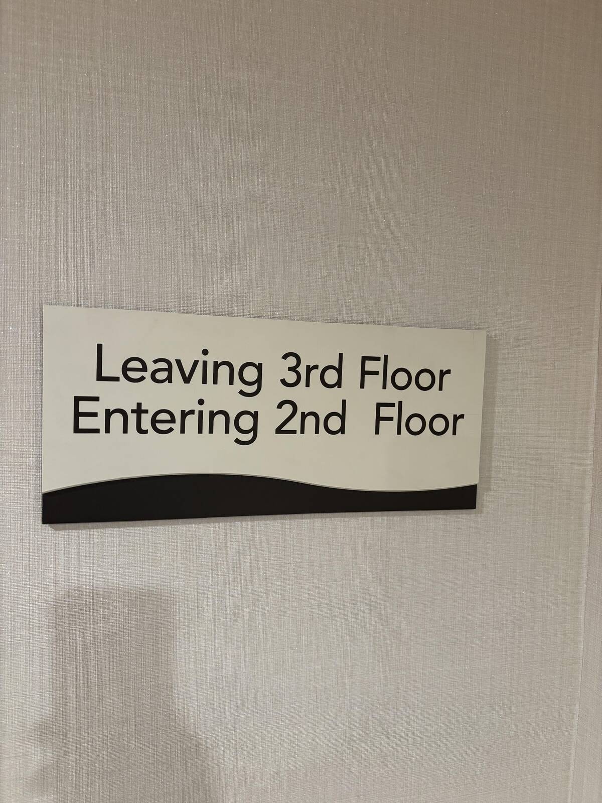 Hotel architecture can get creative, but this is next-level ambiguous. Am I crossing into the Twilight Zone or just going to my room? Navigational signs should not make me question the space-time continuum. Yet, here we are.