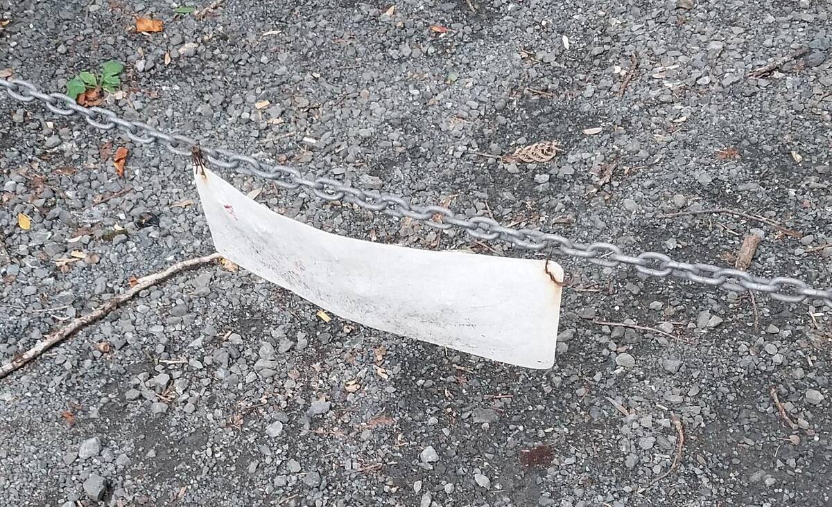 Sometimes the silence says it all. Or, in this case, absolutely nothing. But we’re still supposed to know what it means! This chain and its sign are keeping secrets we can only guess at.