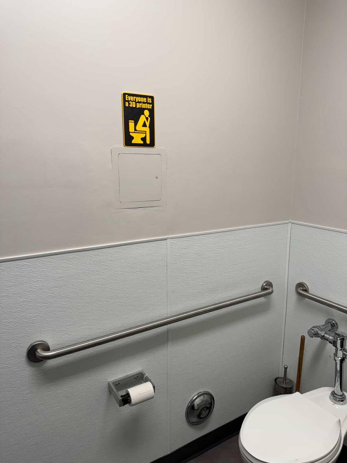 Never has a bathroom sign made me snort-laugh so quickly. A gentle reminder that, deep down, we’re all making “3D prints” in our own special way. There’s nothing like restroom wisdom to keep you humble and slightly uncomfortable.