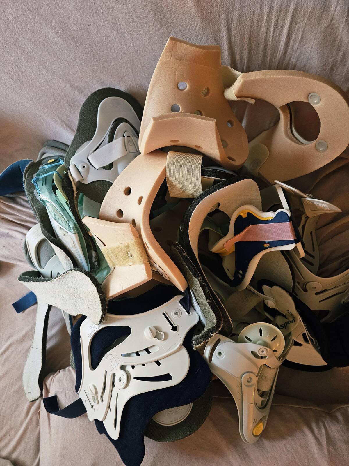 That is a LOT of braces for one person—and each one has its own story. Never thought a pile of medical gear could look this intense. Sending strength to whoever’s powering through all those surgeries.