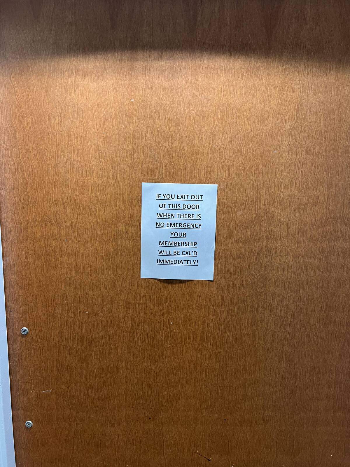 Wow, cancelling a gym membership is usually a bureaucratic nightmare, but here, all you have to do is open this door! Tempting, honestly.