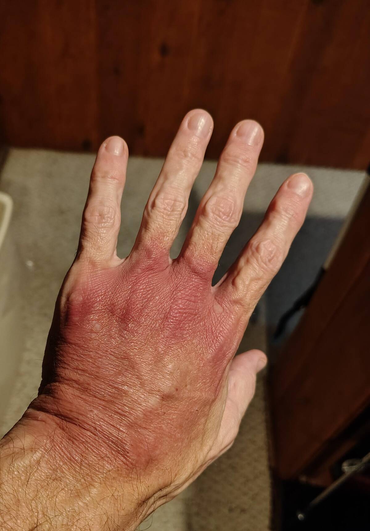 Ouch, that’s a gnarly bruise! Amazing (and a little unsettling) how four days after surgery, your hand can look like you tried out for a superhero origin story. Hope recovery comes with cooler-looking side effects next time.