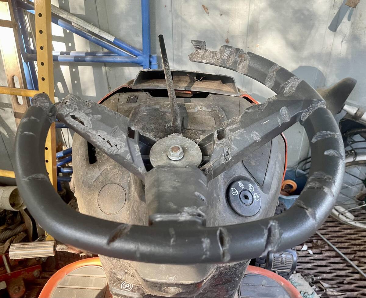I always knew squirrels could be destructive, but 30% of a lawnmower steering wheel? That’s some seriously determined rodent work. They’re probably out there holding tiny lawnmower races when we aren’t watching.