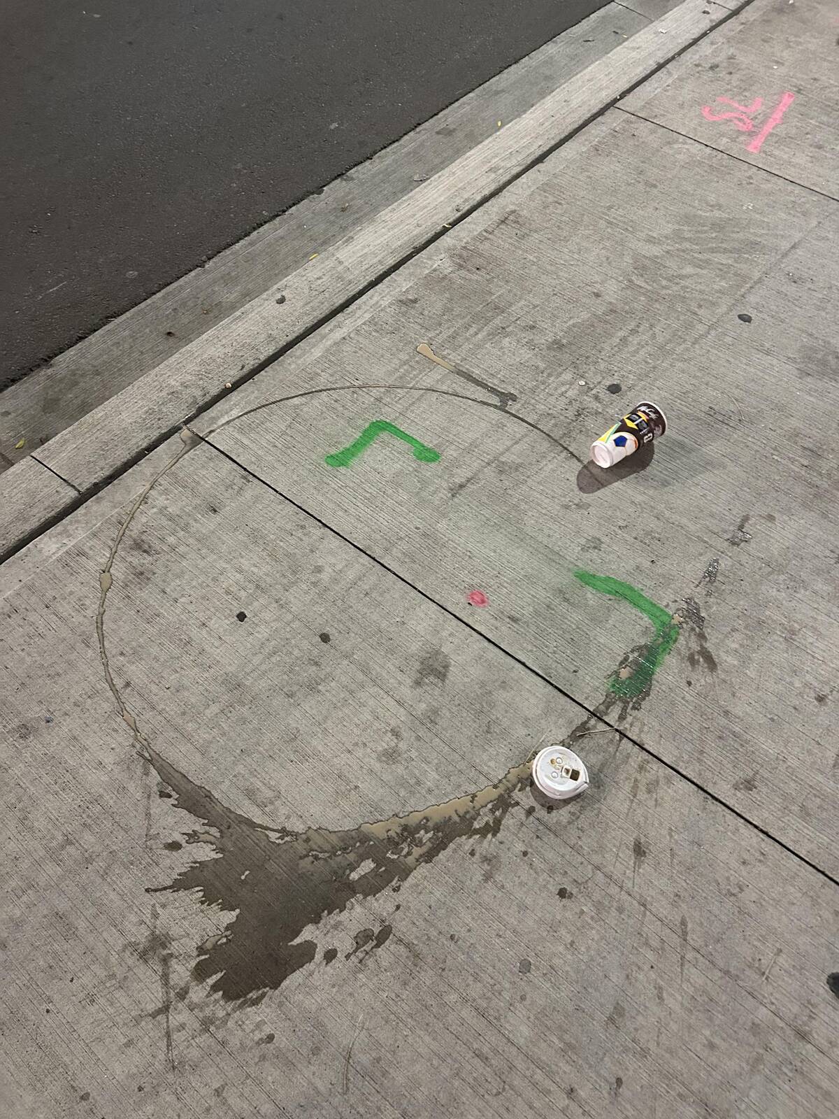 “this spilled coffee made a perfect coffee circle as it rolled on the pavement”