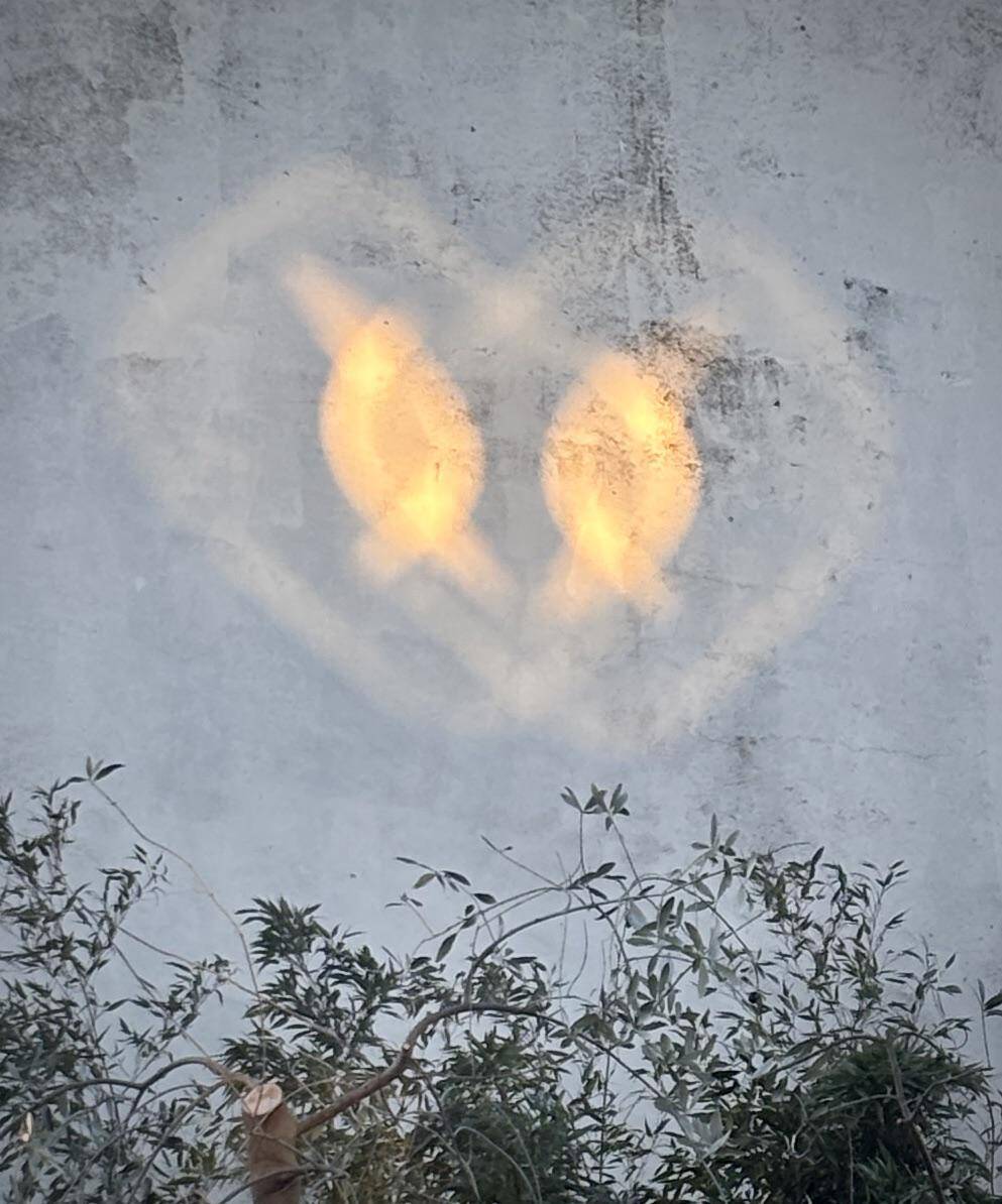 Those reflections are kind of mesmerizing! Looks like the sun decided to paint a glowing double-owl or heart shape on the wall. Sunrise is already magical, but add in some accidental light art and you’ve got a whole new vibe for the morning. Feels almost like a sign.