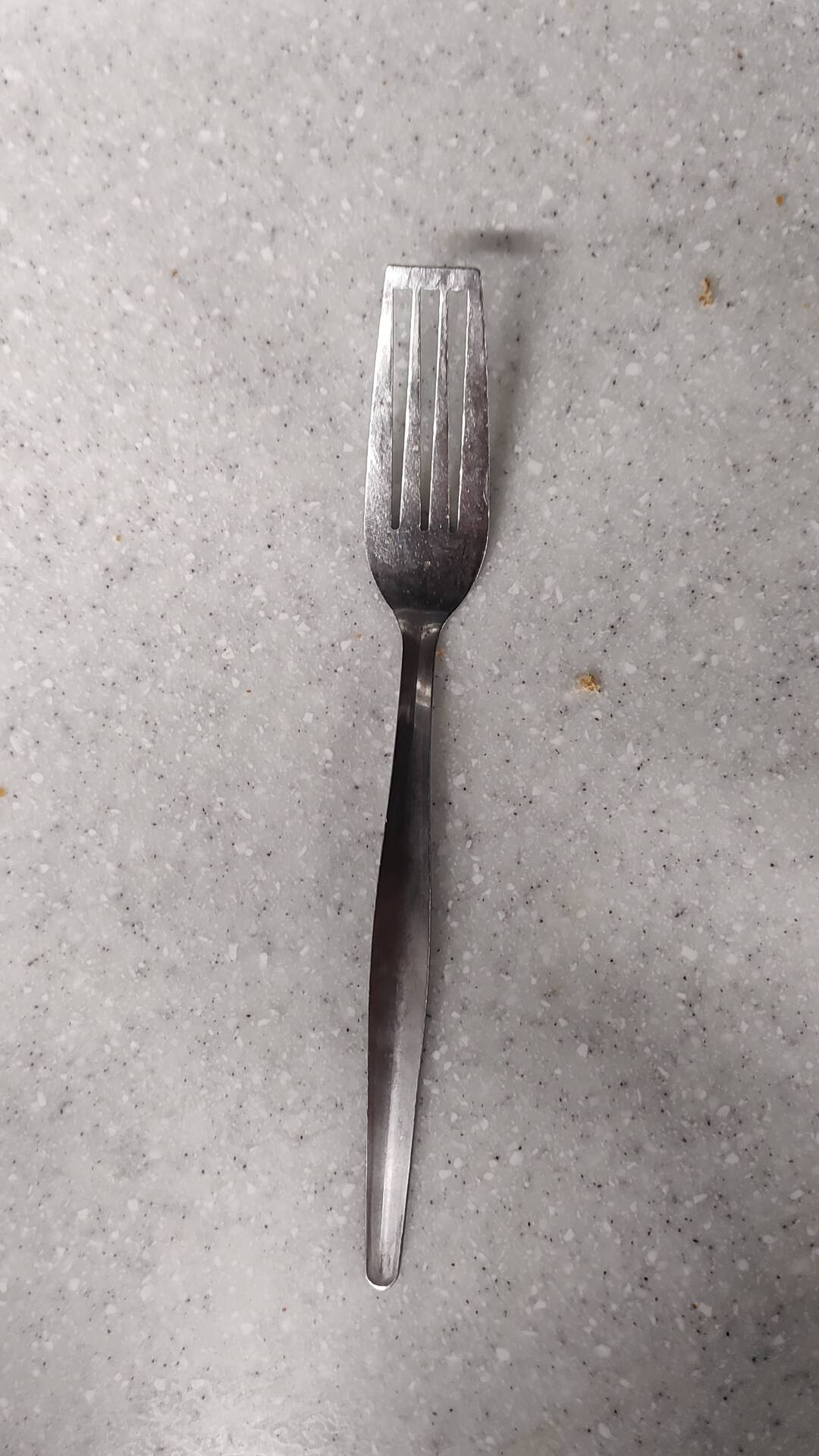 Now this is a fork that’s seen better days! I’m not sure what happened in production, but something definitely went off the rails here. Still, at least it’s recognizable as a fork. The canteen needs to step up their quality control or maybe start a ‘fork fails’ wall of fame.