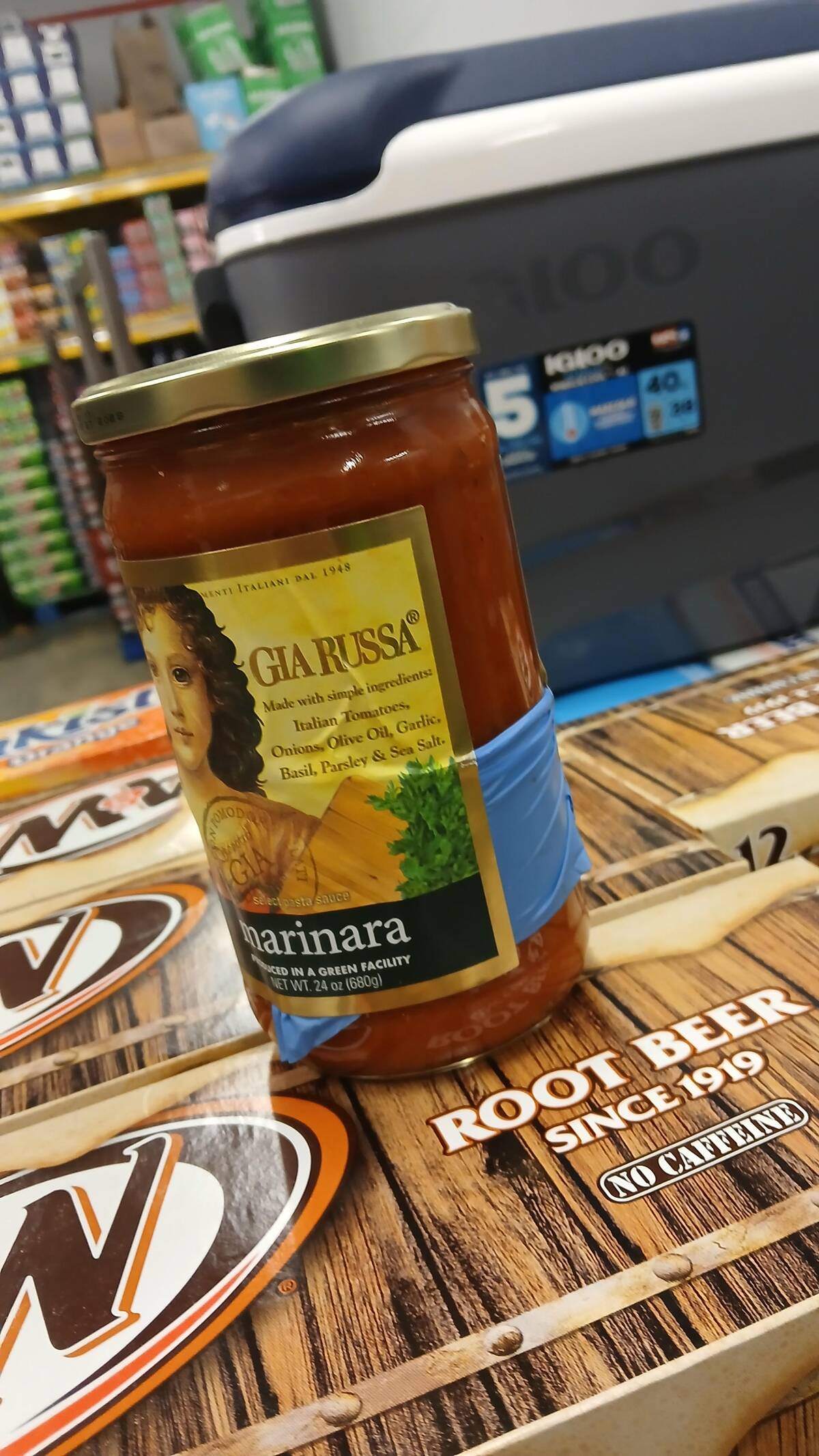 Looks like someone’s spaghetti night just got a little more interesting! That huge blue glove wrapped around the Gia Russia jar is an odd sight in the middle of a grocery store. I wonder how long it took before someone noticed. Talk about taking ‘hand-made’ sauce to a new level.