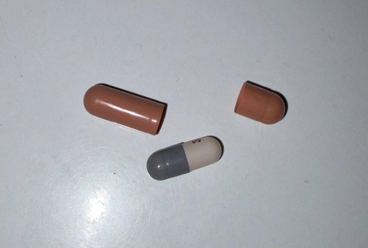 Wait, it’s a capsule… inside another capsule? That’s like those Russian nesting dolls but for medicine! Makes me wonder if there’s yet another tiny capsule tucked inside the small one. Genuinely did not expect to see pill inception today! Now I’m curious about what the outer capsule was even for.