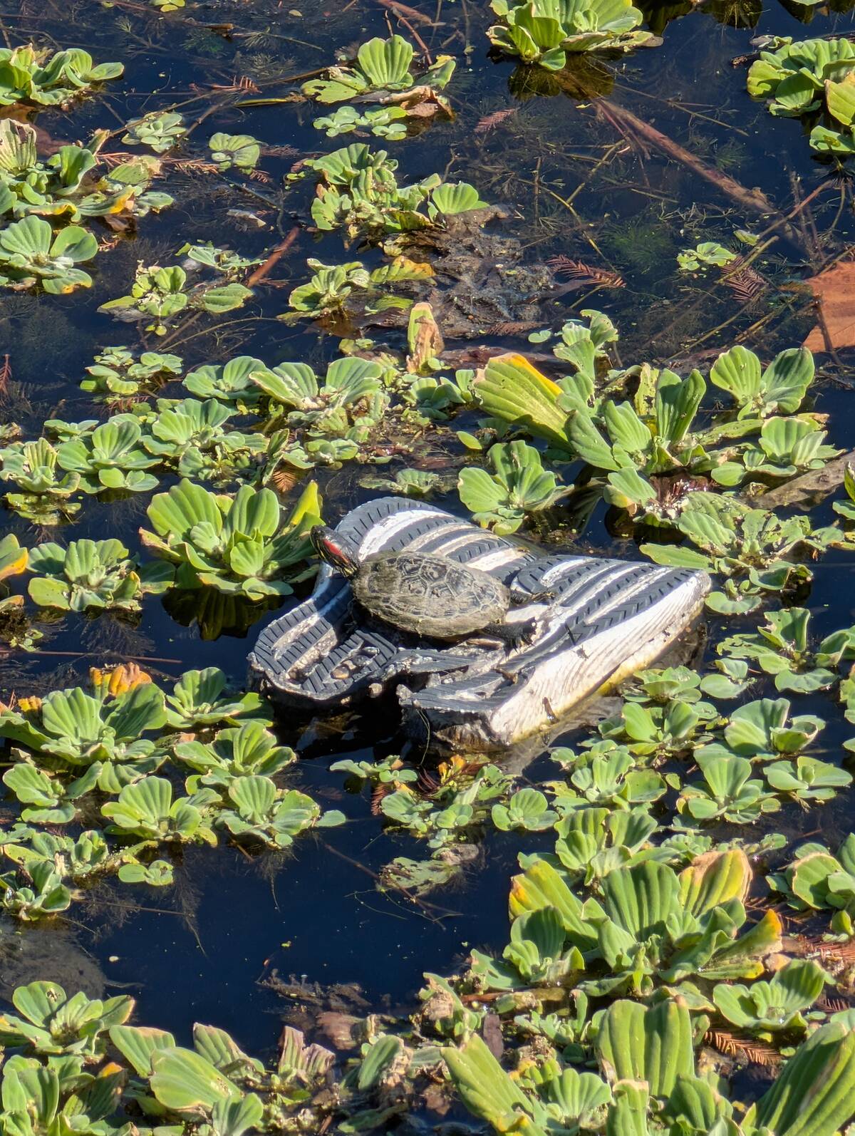 Look at this turtle making the best use of what’s available! Turns out, an old shoe is prime real estate for sunbathing. Nature really is the ultimate recycler. That turtle looks entirely unbothered by its unconventional hangout spot.