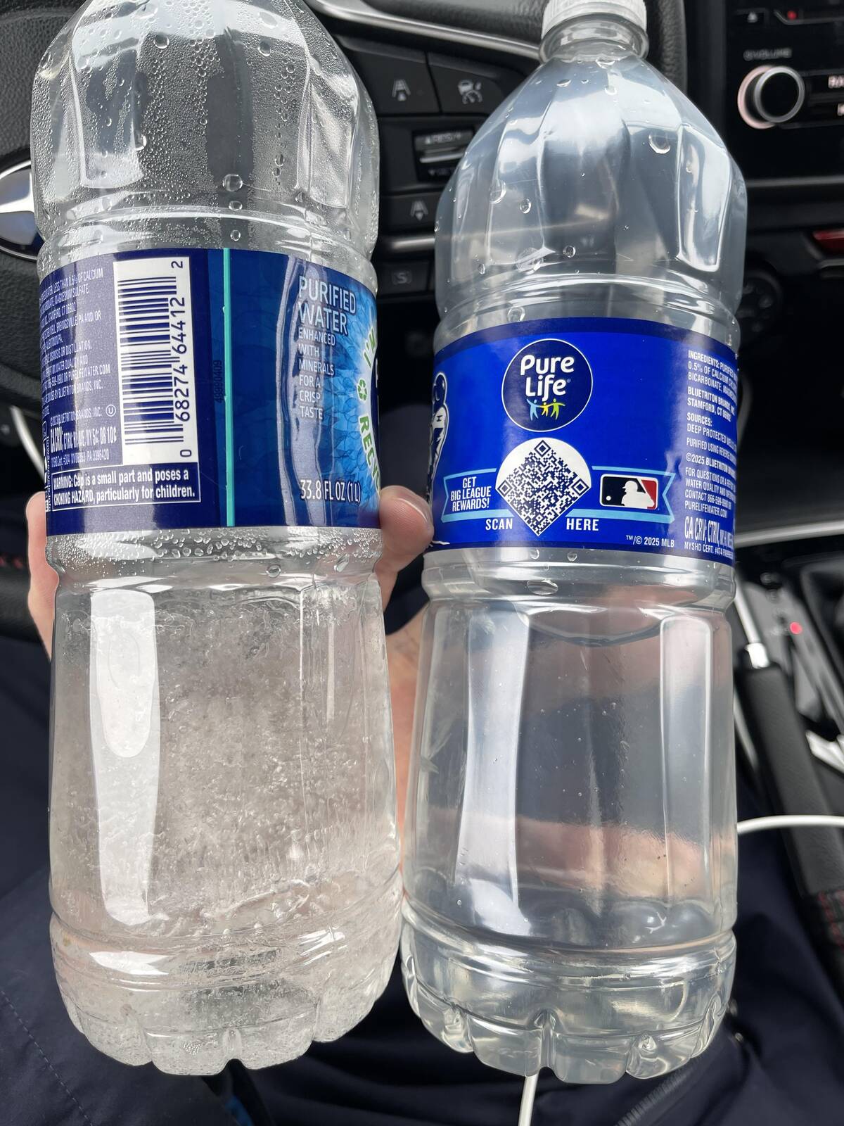 “Two half-full bottles of water from the same company, both left in my car. One froze, the other did not.”