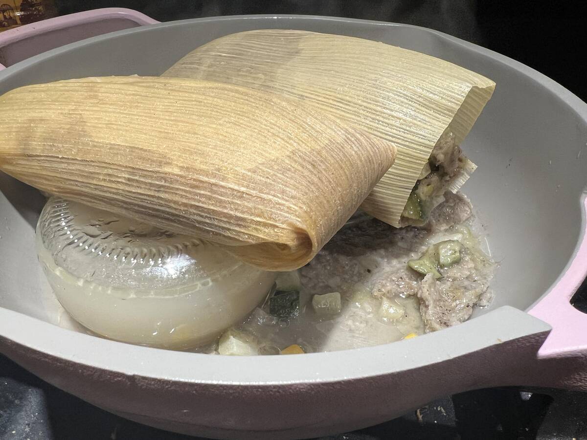 “Steaming tamales, all the water was pulled up into the little upside-down cups that I used to raise them.”