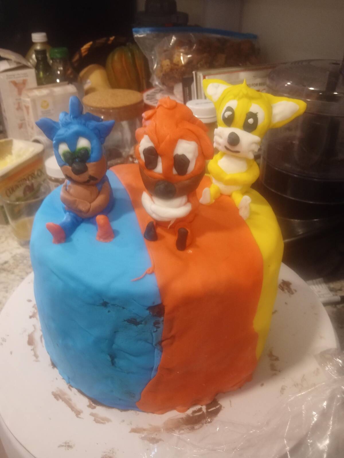 When your kid insists on a Sonic-themed cake, you deliver—even if the result looks more like a fever dream brought to life. Are those the characters or witnesses to some chaos? Parenting win: dreams fulfilled, even if Instagram-worthiness is questionable.