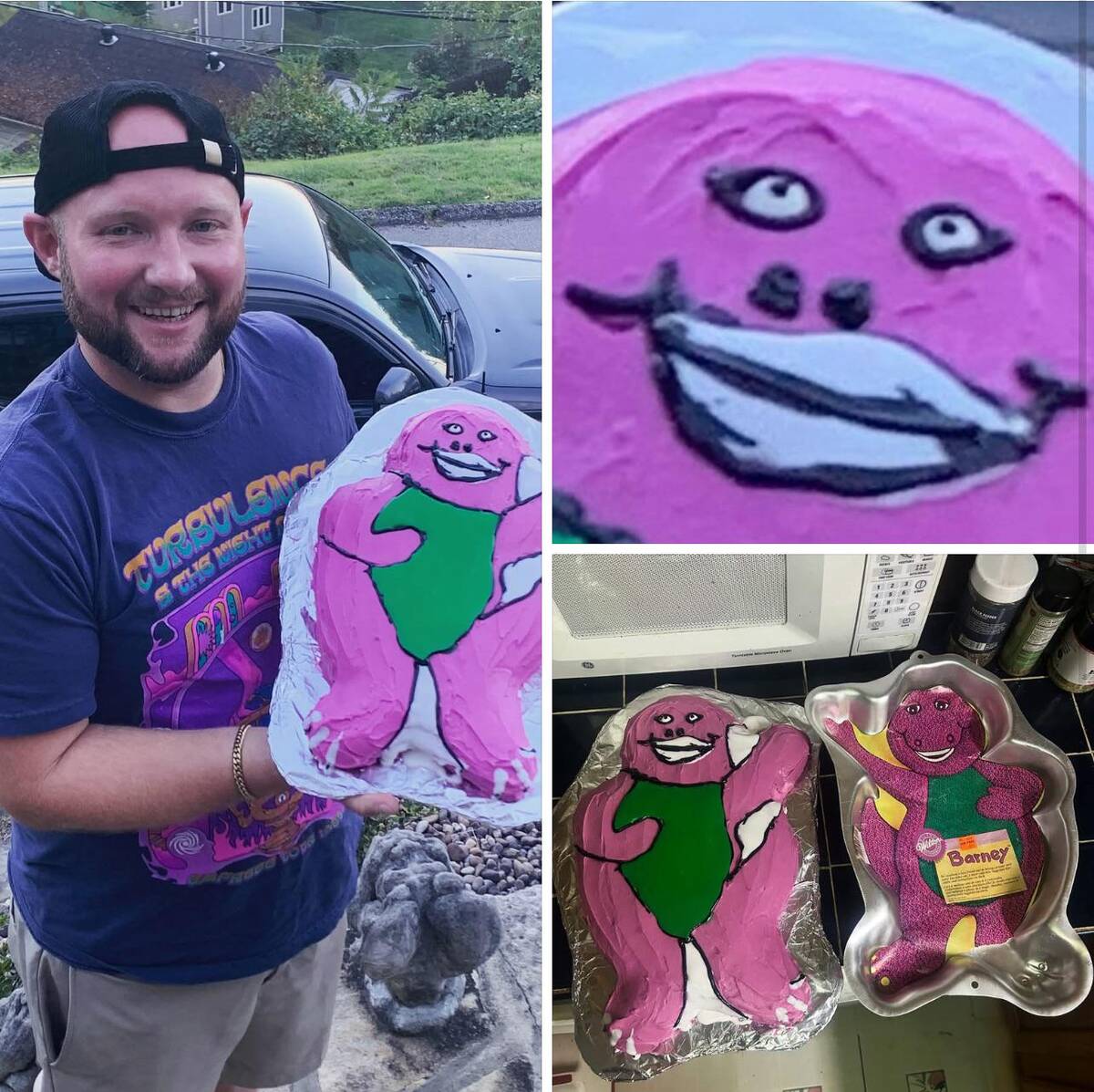 “My dad made me a homemade Barney cake. I’m 34. Masterpiece or fail?”