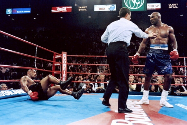Holyfield bullied Tyson from the first bell up until the 11th round via TKO. “The Real Deal” ended “Iron Mike” once and for all at 37 seconds of the decisive frame.