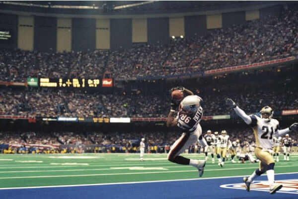 Drew Bledsoe’s injury in September forced rookie Tom Brady into the role of starting quarterback. Brady and the New England Patriots shocked the football world by going all the way to the Super Bowl. The Patriots surprised everyone again by beating the Rams 20-17.