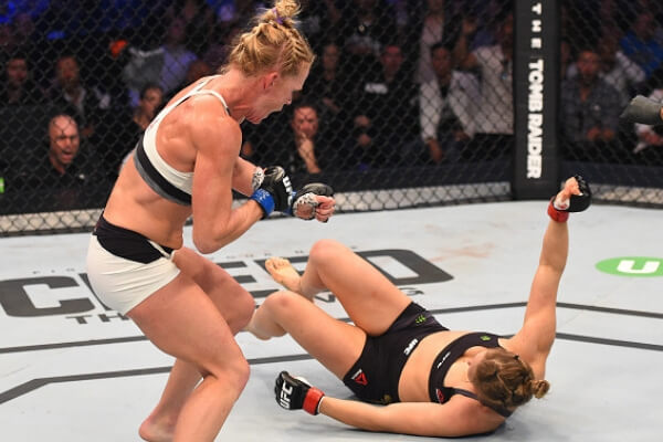 In Ronda Rousey’s seventh defense title, she faced Holly Holm at UFC 193. Rousey was heavily favored to win, but she wasn’t able to get Holm to the ground.