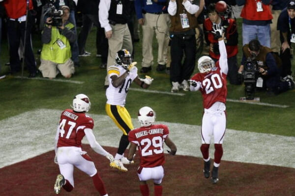 Kurt Warner and the Arizona Cardinals had a 23-20 lead with 35 seconds remaining. The Pittsburgh Steelers had the ball, and Ben Roethlisberger threw the ball to his receiver, Santino Holmes. The wideout reached the back corner of the end zone for the game’s winning score.