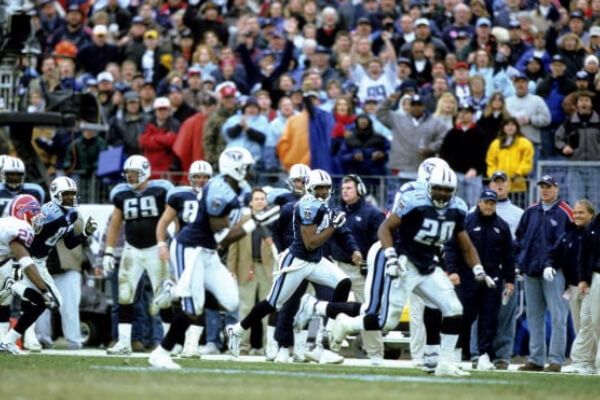The Buffalo Bills were looking for a victory over Tennessee. With 16 seconds left in the game, Kevin Dyson caught the ball after Frank Wycheck threw a lateral pass. Dyson proceeded to run 75 yards, which ended up being the game-winning touchdown.