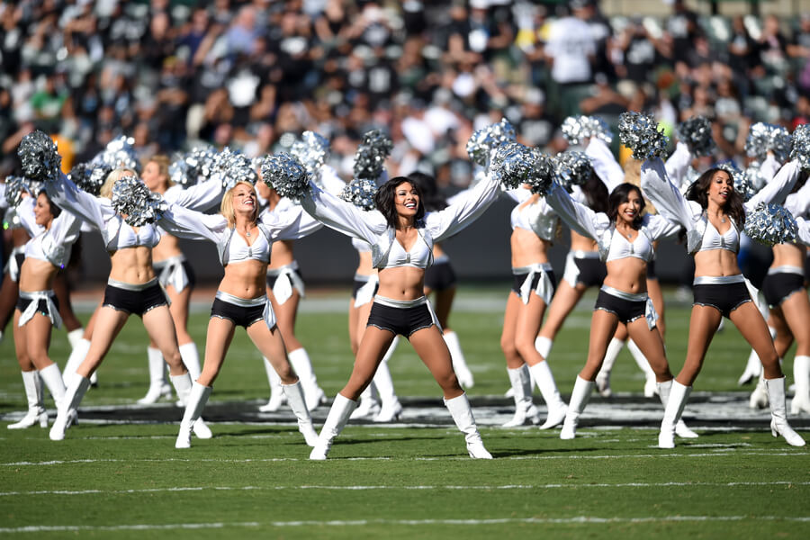Cheerleaders must portray happiness at all times. When the job gets tough, they are required to smile and keep quiet. The Raiderettes are instructed not to use slang, innuendos, crude language, or “negative facial expressions.”