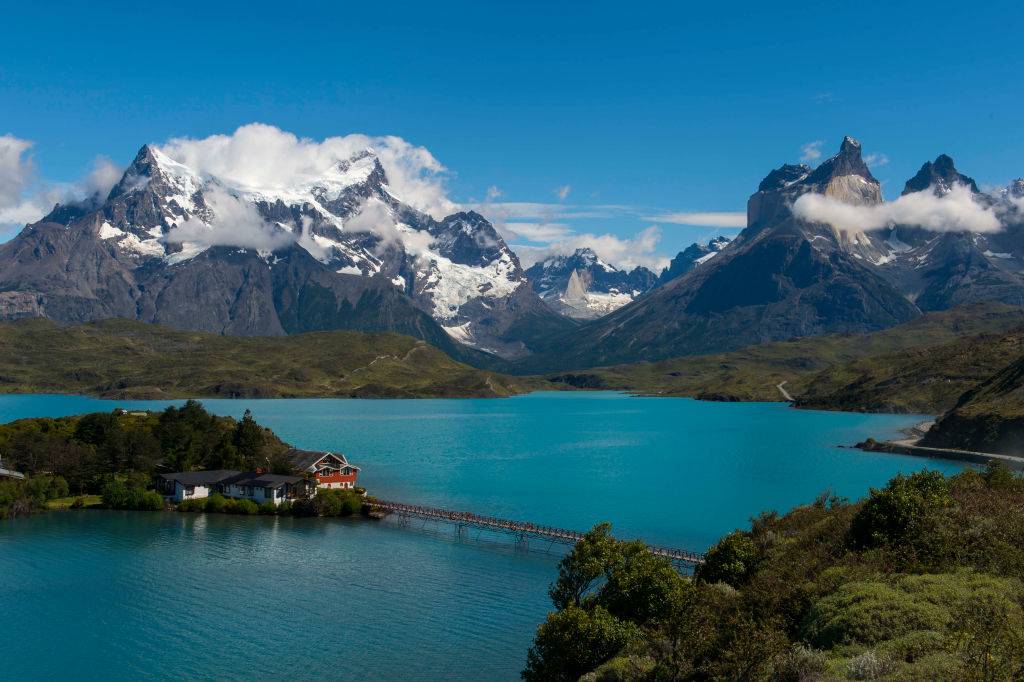 Torres Del Paine National Park is one of the most gorgeous spots in Chile’s Patagonia region. The camping site features lush, green vegetation down low and snow-speckled mountains up top.