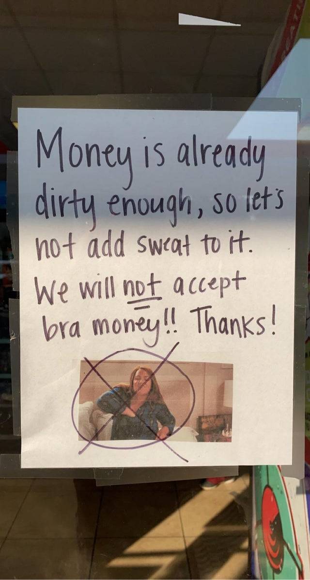 The store owner had to post a sign to stop these “unsanitary transactions.”