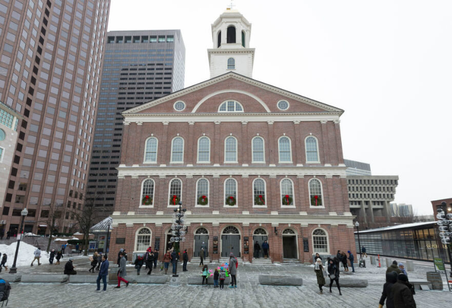 Faneuil Hall has been a marketplace and meeting hall since 1743. It was the sight of several speeches from the likes of Samuel Adams and James Otis.