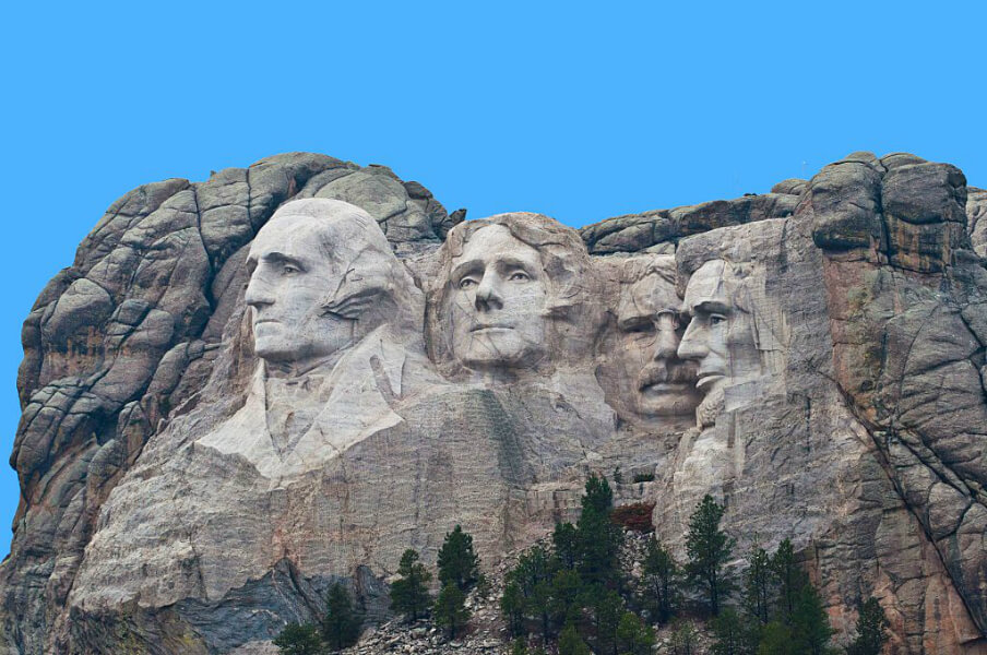 Mount Rushmore is the home of the heads of for United States Presidents: George Washington, Thomas Jefferson, Theodore Roosevelt, and Abraham Lincoln.