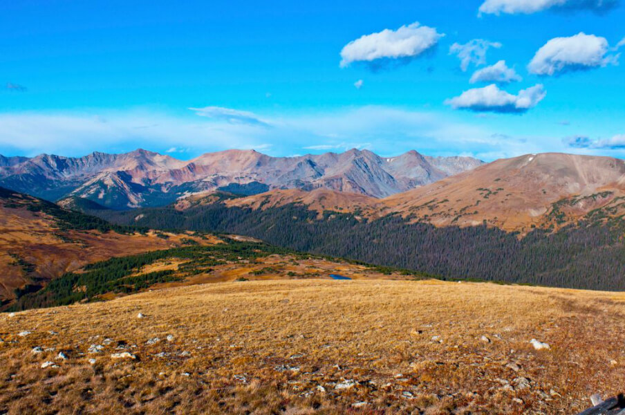 The park is between the towns of Estes Park to the east and Grand Lake to the west. The eastern and western slopes of the Continental Divide run through the center of the park.