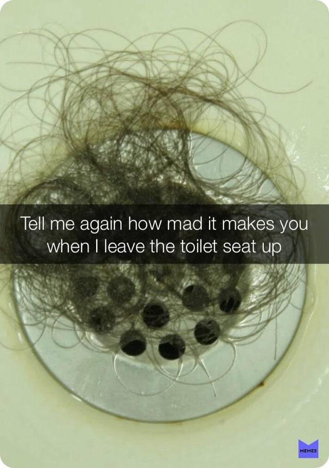 This photo seems pretty self-explanatory thanks to the caption that says, “Tell me again how mad it makes you when I leave the toilet seat up.”