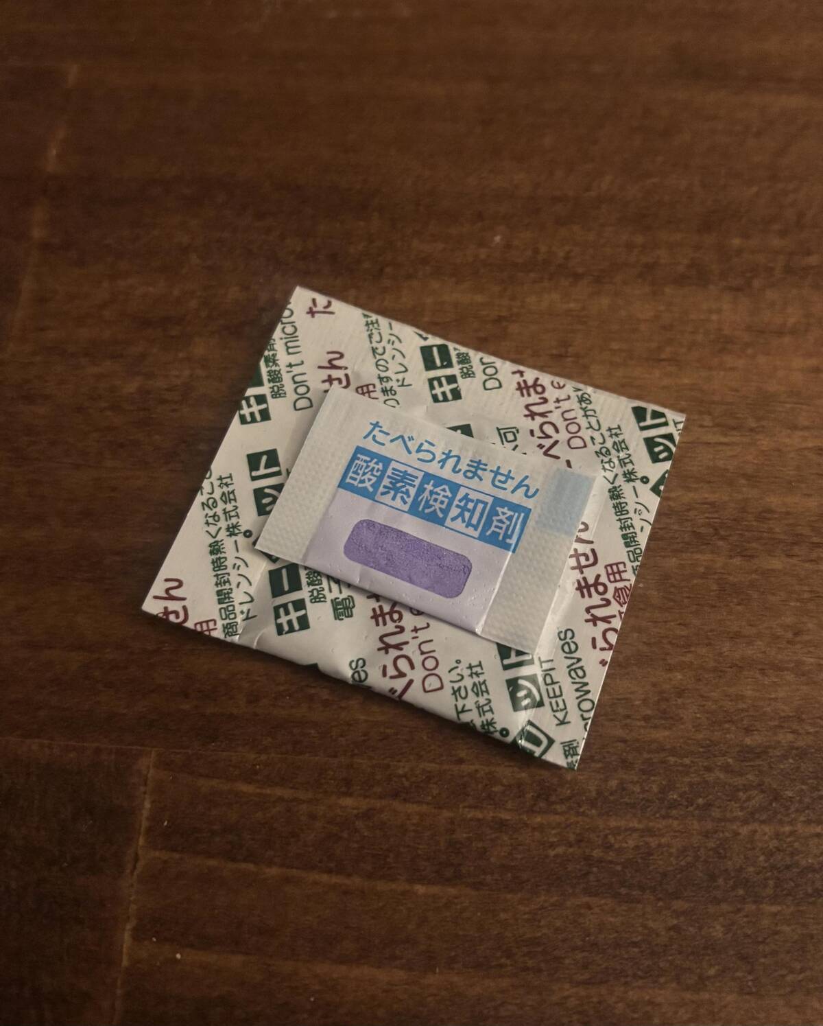 A silica gel packet is fine, but one with a tiny oxygen detector? This feels extra fancy and also slightly mysterious. I didn’t even realize oxygen needed special monitoring, but now I want to inspect every snack packet for hidden gadgets.